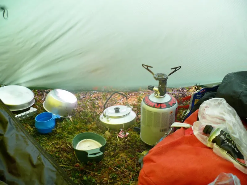 Det var halvmulet men uppehållsväder när jag gick och lade mig på kvällen. Klockan halv 4 ringde mobilen och väckte mig. Dags att stiga upp och förbereda sig för fågelinventering. Men det smattrade på tältduken. Regn!