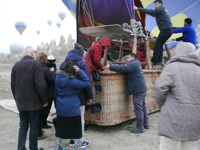 Strax före klockan 6 på morgonen samlades folk i hotellets lobby. Alla undrade hur det skulle bli med dagens ballongstart. Utomhus var det nog någon minusgrad, vi hade blivit uppmanade att ta på oss varma kläder.