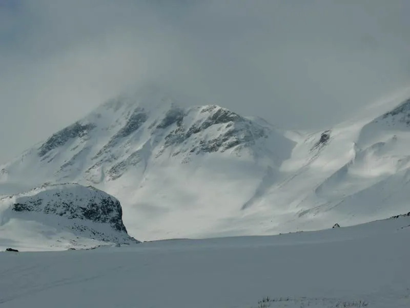 När vi klev ut ut tältet blev vi överväldigade av det vi såg. Nattens vind hade upphört helt och hållet. Allt var inbättat i fin pudersnö. De flesta stenblock i vår närhet hade försvunnit i pudret och syntes inte längre. Bergen, sluttningarna och landskapet i övrigt var helt vitt. Och som pricken över i så höll solen på att tränga igenom de tunna molnen och förvandla dagen från ett mjukt soldis till en klar dag. Vi saknade ord och bara njöt av anblicken.