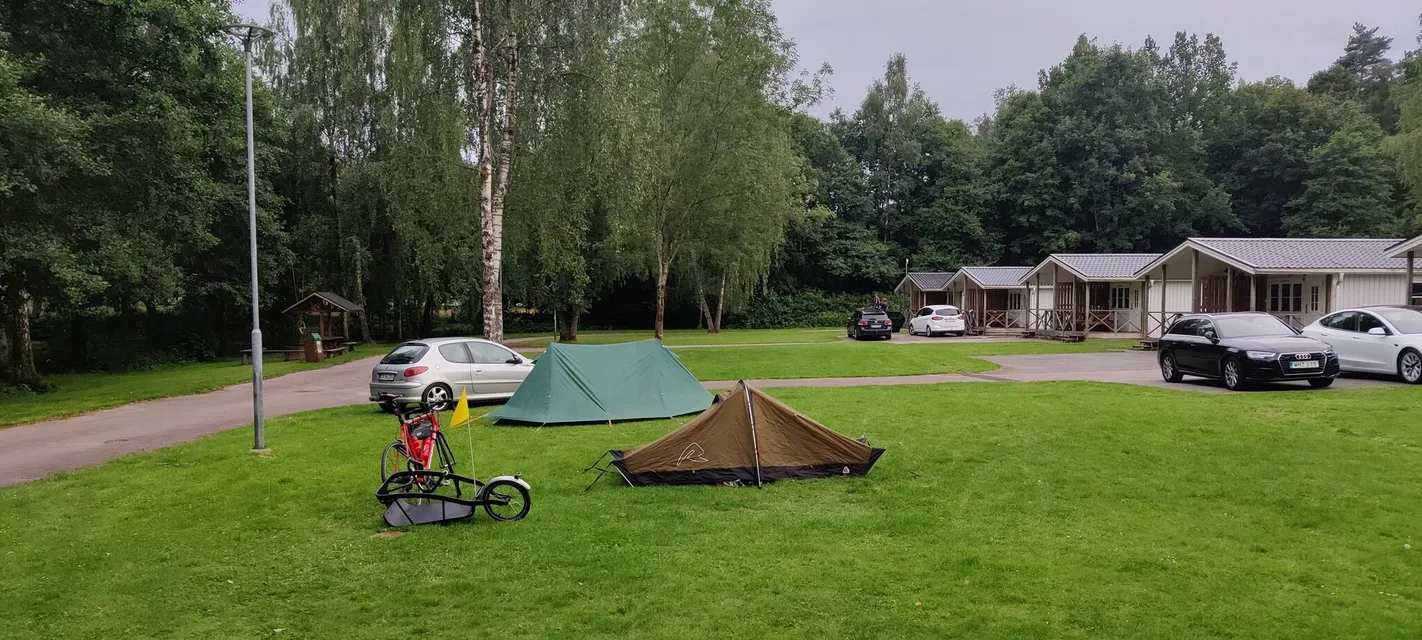 Färden från mellanmålet gick bra men banvallen där jag befann mig vid stoppet tog tyvärr slut så det blev en del backar när jag tog mig österut. Det blev en sen lunch i Mullsjö och jag var glad över att regnet verkade ha passerat innan mig, vägarna var blöta nästan hela turen men det regnade bara några få droppar där jag var. I morgon säger prognosen att jag istället ska bli jagad av regnet, får se om det är lika trevligt...