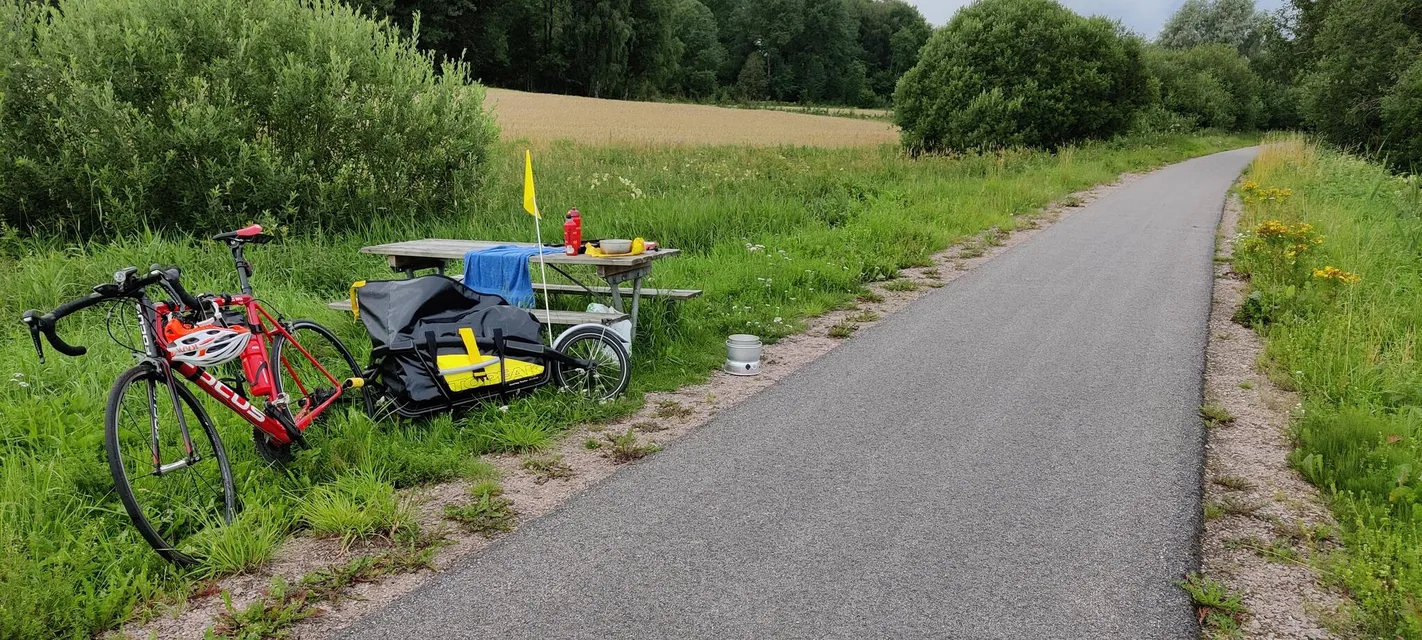 Har passerat Mullsjö och regnet har slutat, hoppas det inte kommer tillbaka. Det går trögt idag, mycket upp och ned. Det går lite för fort utför, det känns fel att bromsa bort så mycket fart som jag gör. Nu vidare västerut!