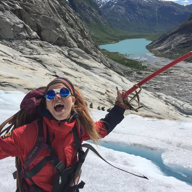 Hallådär, här är en 24 årig pratglad, utåtriktad och energisk tjej som pluggat Vildmark & Äventyrsguide i Åre och numera är utbildad fjälledare & guide. Testar gärna mina egna gränser och har väldigt mycket myror i brallan så sitter helst inte still för länge innan jag hittar på något. Befinner mig i Jostedal på somrarna och just nu i Björkliden vintertid.