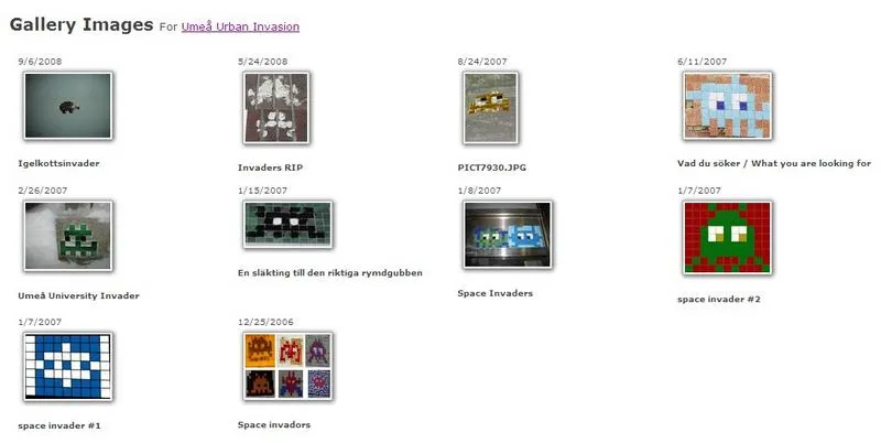 För 1,5 år sedan publicerades en spännande och intressant cache, Umeå Urban Invasion av Bo & Elisabeth . En okänd konstnär som smyckar husväggar med med mosaikkonstverk som föreställer från det klassiska dataspelet Space Invaders. Det började i Paris och sedan fortsatte i London, Tokyo, Amsterdam osv. Bo & Eliasbeth hade råkat hitta den när de var på besök här i Umeå. De lade ut cachen men i mystery-form som går ut på att hitta den rätta rymdvarelsen och räknar koordinater enligt cachebeskrivningen.
