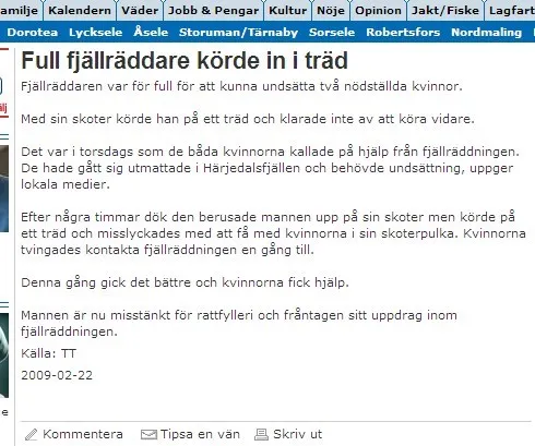 ...Är inget jag vill råka ut för när jag behöver hjälp ute i fjällen.... Läste först nyheten på VK:s hemsida .