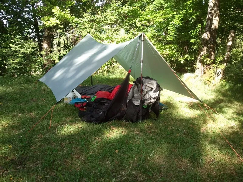 Jag hade införskaffat en tarp med ett sovsäcksövedrag för att minska på packningen i ryggsäcken. Det kändes onödigt att ha rejäl fjällutrustning i ryggsäcken ute på Skåneleden. Syftet var också att kunna bege mig ut på korta turer framöver med liten packning som möjligt.