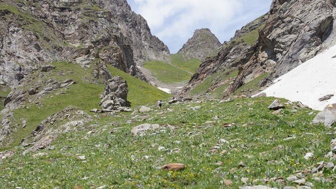 Efter passet, Col di Entrelor 3007 m, ner mot dalen Entrelor och sedan Rhêmes.