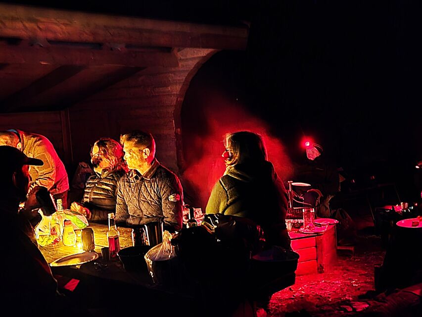 När mörkret sänker sig blir det tillfälle för både skratt och lite allvarligare tongångar. Ja, vi är ju medelålders och har varit med om en del.