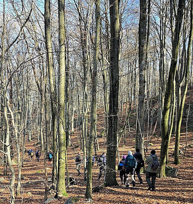 Rimfrosten gnistrar när vi gör frukost och väntar in dagsvandrarna. Det blir ett stort gäng som ringlar sig nedför Göingeåsen. Var det så här Lille Mads anförde sina trupper för att undvika upptäckt.