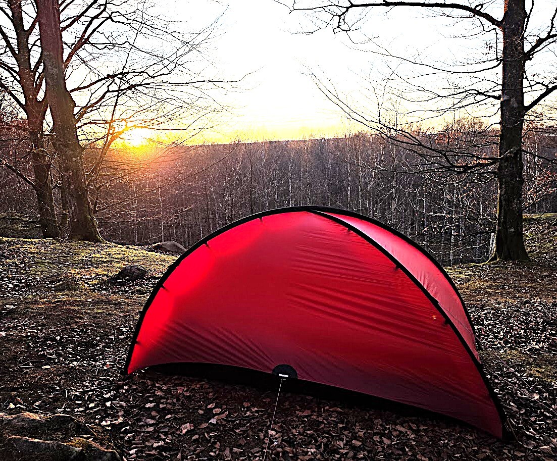 Torra fjolårslöv prasslar och ger skönt underlag åt tältet.