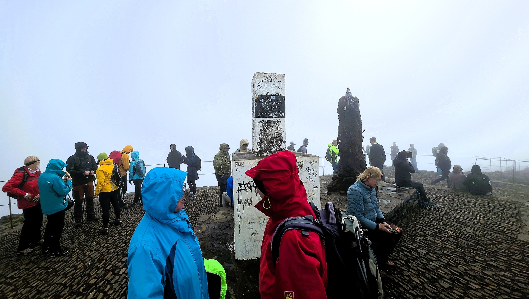 Vi ska besegra Pico de Ruivo, högsta toppen på ön. Runt nollan när vi börjar gå. Dimman tätnar och vattendropparna fryser till is. Det blir allt svårare och kallare. Sista biten till toppen är som klättring och vinden når orkanstyrka. Fikastunden inställes. När dimman pressas mot växterna fastnar vattendropparna och skapar vackra kristaller.
