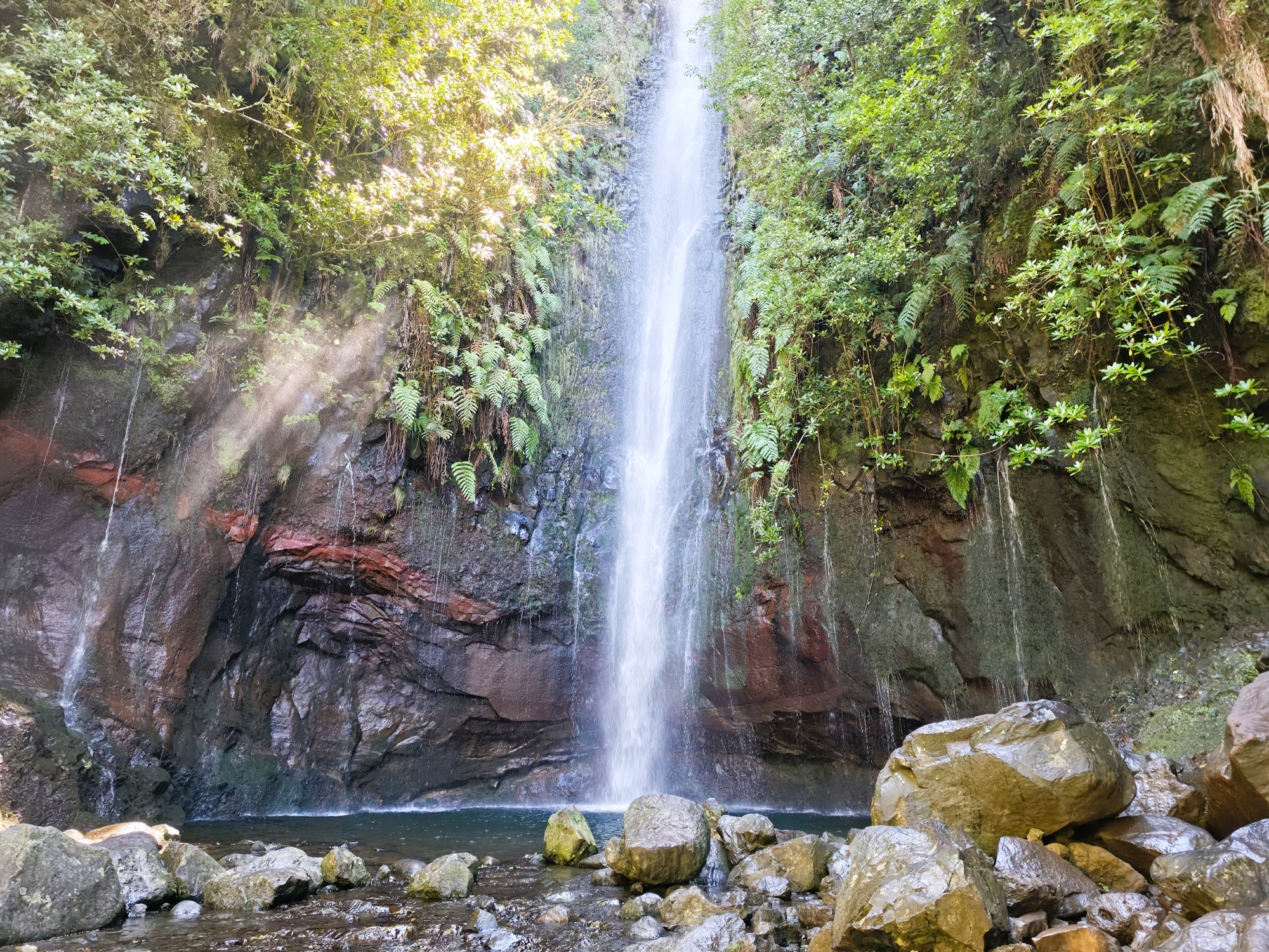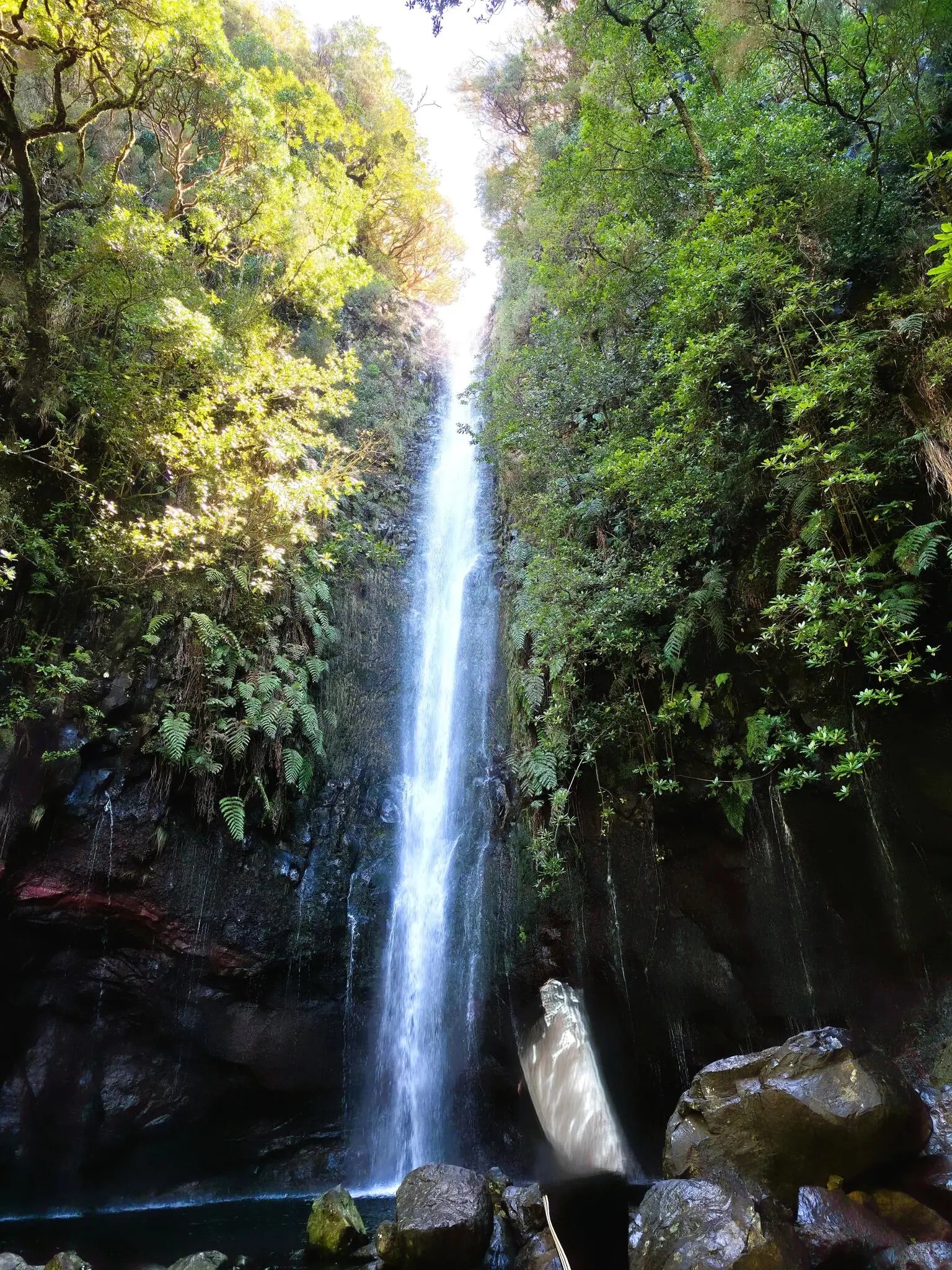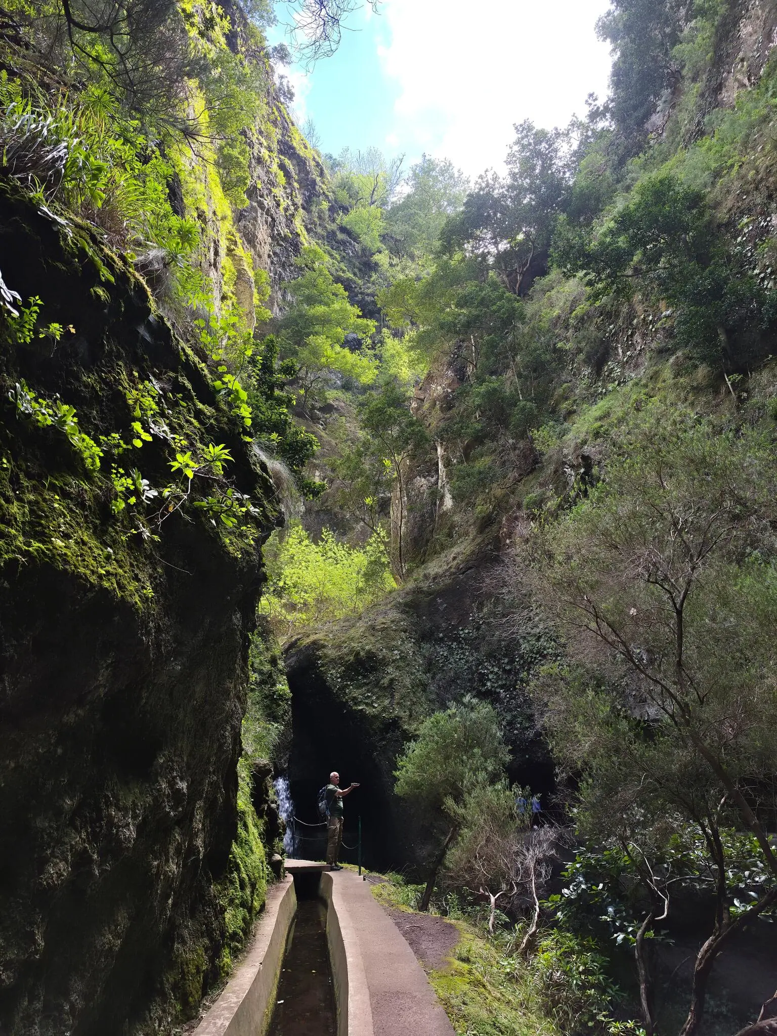Lombada da Ponta do Sol, snirklar sig längs fuktdrypande bergsväggar. Tämligen kyligt med en överdånig växtlighet som för tankarna till Jurassic Park.