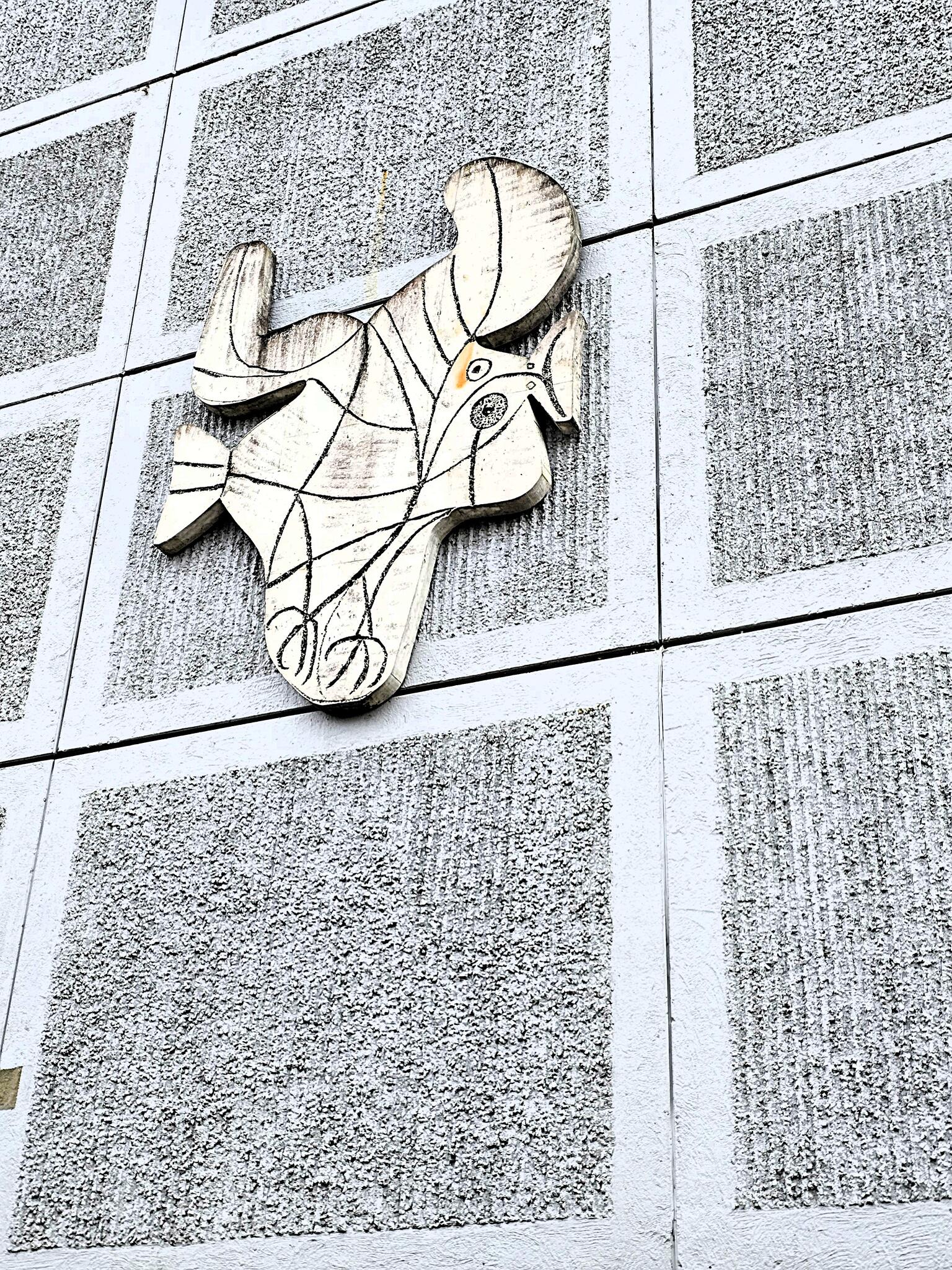 Närlunda höghusområde bjuder på en konstskatt. Mot en av dess gavlar finns ett konstverk av Pablo Picasso.