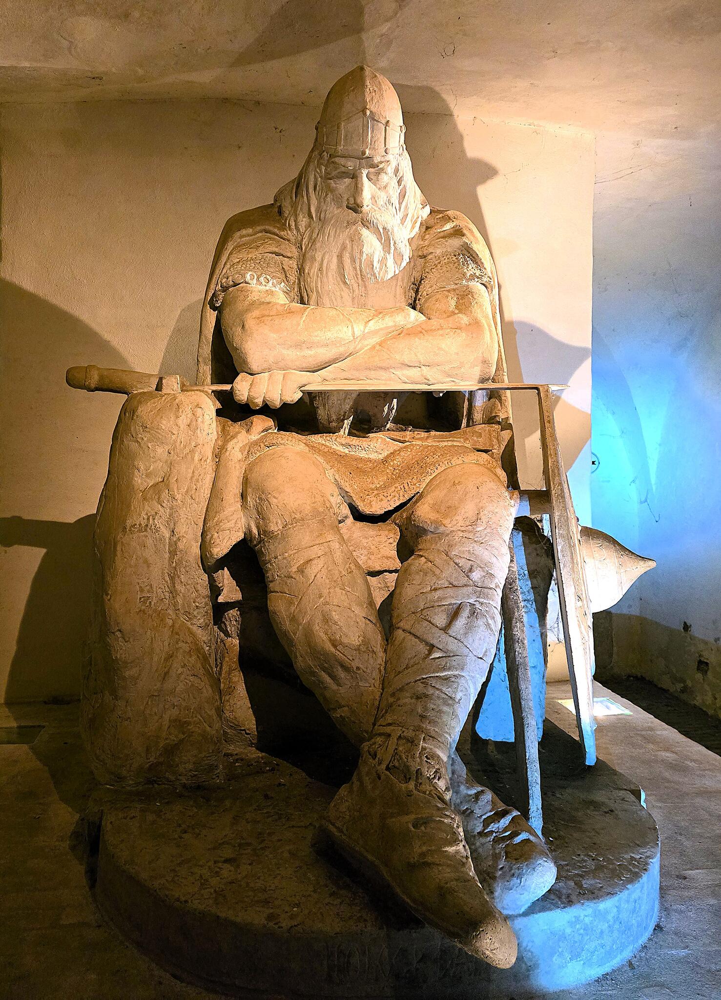 Vi lämnar kanontornet och beger oss ned i de mystiska källarhålorna, Kasematterna. Fotogenlyktorna flämtar i fukten. Här nere bodde soldaterna med sina hästar när slottet belägrades av svenskarna. Längst därnere låg fängelsehålorna för dömda och krigsfångar. Enorm staty av Holger Dansk, sagohjälten som ska väckas till liv och försvara Danmark i ofredstid. Under andra världskriget fanns det en berömd motståndsgrupp som tog sig namnet, Holger Dansk. Kasematter är förstärkta murverk under slottet. Säkert välbyggda en gång i tiden men jag får en klaustrofobisk känsla och måste ut.