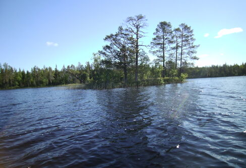 en av två holmar på Kåskatsjön. det var lite vågor i vattnet men det blev en gädda på kroken.Savotta Loue som rastskydd och snuskburken som kokar the ...