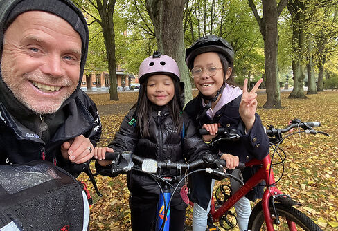 Tänkte nämna att döttrarna och jag cyklade ytterligare drygt 36 mil under deras höstlov nu, från Borlänge till Sundsvall över skogen. Bara ...