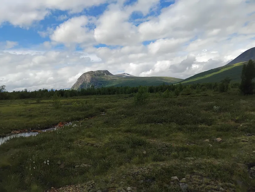 Efter några resdagar kom jag till Nikkaluokta. Jag parkerade bilen och betalade parkering. Sedan hängde jag på mig ryggsäcken och började vandra. Den första sträckan ner till Enoks, där blev det lunch. Efter lunchen började jag att vandra igen. Till en början var det härligt men efter en tid började värmen att ta ut sin rätt, det var riktigt varmt och det blåste ingenting. Det blev några vätskepauser under vandringen. Jag som nästan aldrig svettas kunde vrida ur min t-shirt efter vandringen. Väl framme och efter incheckningen så blev det dusch och att fylla på med vatten. Och på kvällen blev det middag och att vila. Och nu ska jag försöka hitta ett ställe där jag kan köra rörlighetsträning för kroppen är lite stel.