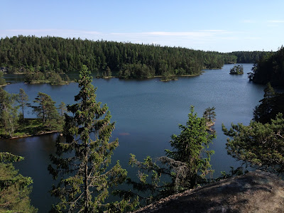 Efter en dryg timma denna gång var det dags för nästa rast, även detta vid en sjö, Härsvatten. På andra sidan sjön badade och tjoade ett gäng ystra ungdomar som studentikost betedde sig såsom ungdomar gör i början av såväl sommaren som livet. Norrut, i mitten av sjön på dess östra sida och på en lite avsides udde dök ett par upp, gissningsvis för att på så sätt få lite avskildhet på sin badtur. Jag kunde inte ha mer rätt... När jag gick vidare längs med västsidan kunde jag genom lövverket se att det inte bara var bada de ville göra avskilt. Man kan väl säga som så att de såg till att få en helt egen naturupplevelse där på klipporna, bara de två. Trodde de...