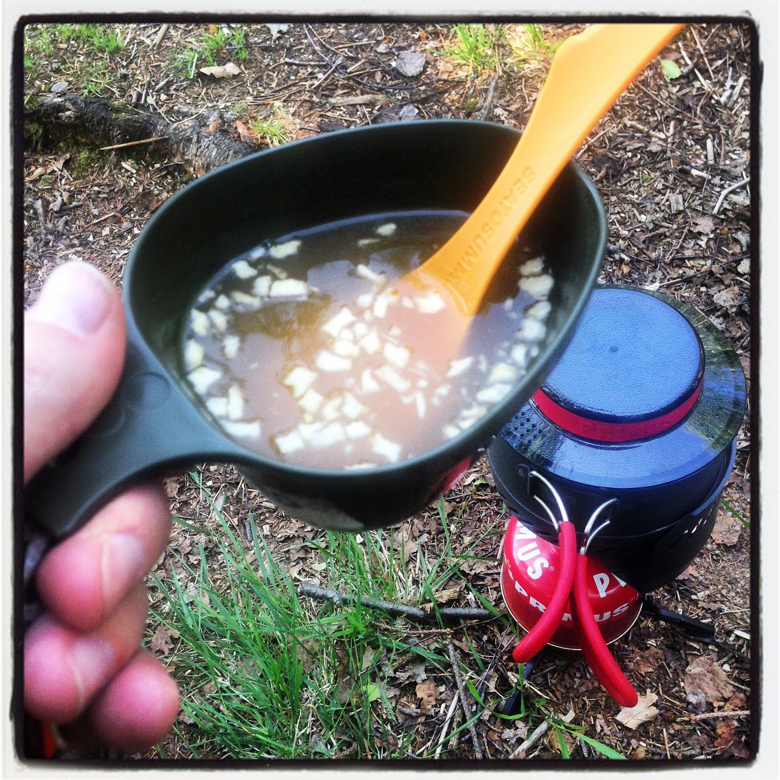 Vid Bottenstugan (där etapp 8 tar slut) var det tydligen familjedag med någon scoutkår så det vimlade av ungar och deras föräldrar medan jag tog av mig kängorna och vispade ihop en liten fruktsoppa och en kopp kaffe på mitt Primuskök. Jag satt väl någon timma innan jag fyllde på mina vattenflaskor i gårdsbrunnen och gav mig av igen. Det hade gått åt mer vatten än jag trodde och jag började fundera på fortsättningen. Jag har inte en speciellt känslig mage, men jag ville ju inte ta vatten ur vilken tjärn som helst heller. Det är ju inte glaciärvatten direkt och på en del sjöar kunde man tydligt se att vattenståndet var lägre än normalt. Min hjärna kalkylerade dock att jag skulle klara mig till kvällen då jag kunde koka vatten för nästa dags strapats.