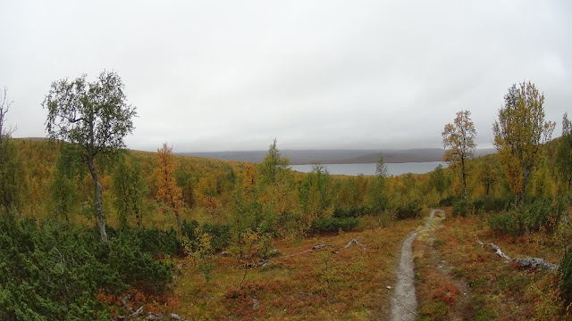 Det blev en molnvandring idag också, men inte i samma utsträckning eller lika tjock som igår. Jag stannade ofta och njöt, drack i så många jokkar jag kom åt och åt sncaks på en dimmig kulle. Strax före lunch kom jag ikapp de fyra pensionärerna från Aigert som strävade på. Jag mötte också en japan som hälsade bugandes. Värden i Serve undrade om jag mött honom än (eller om det var någon annan). Några asiater var tydligen på väg till Abisko nu vilket inte förefaller helt genomtänkt. Det är sent på säsongen, det blir snabbt både mörkare och kallare och än viktigare, snart stänger stugorna. Här i söder har de öppet till 25/9 men norröver stänger de en vecka tidigare, dvs om en vecka. Och med tanke på att det tagit mig fyra veckor att ta mig hit... Lägg därtill att båttransporterna som måste fungera. När tar de tex upp båtarna norr om Jäkkvik? Och så jämför vi med herr Klug som planerat och förberett i två år...