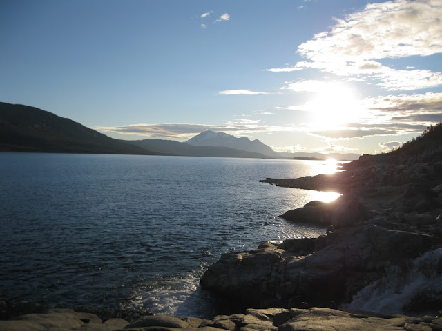 PS. Kanske egentligen ett PS från igår men efter maten kom solen fram lite mer bakom molnslöjorna i väster på sin väg ner för dagen. Jag kunde inte förmå mig själv att gå därifrån. Jag satt kvar en extra timme och barta följde dess väg över himlen. Akkamassivet lystes upp av den och jag kunde se att på ett par andra klippor hade Uppsala och Skäggtysken som jag träffat förut i Kaitumjaure stannat upp med samma syn för ögonen. En så fin kväll, vilken solnedgång! Jag kom att tänka på killen som valsade in i Kaitum och slängde i sig frukost på en kvart innan han jagade vidare efter att ha gått 80 km på två dagar. Han stannar nog alrid upp och ger sig själv tid att njuta på detta vis. Han har säkert trevligt på sitt vis på sin resa, men lite missar han allt. Stackars honom.