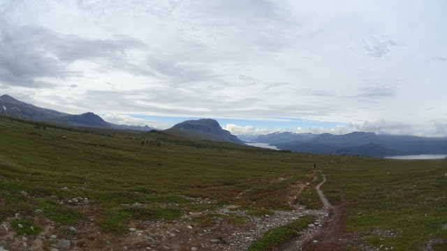 Den glade mannen från Stockholm som jag stötte på i Teusajaure kom ikapp oss igår och var lika glad och trevlig då. Han slog upp sitt tält mellan mig och Uppsala och snarkade en del under natten. Jag somnade om men idén med öronproppar är inte dum, tveklöst. I alla fall när man tältar ihop med andra.