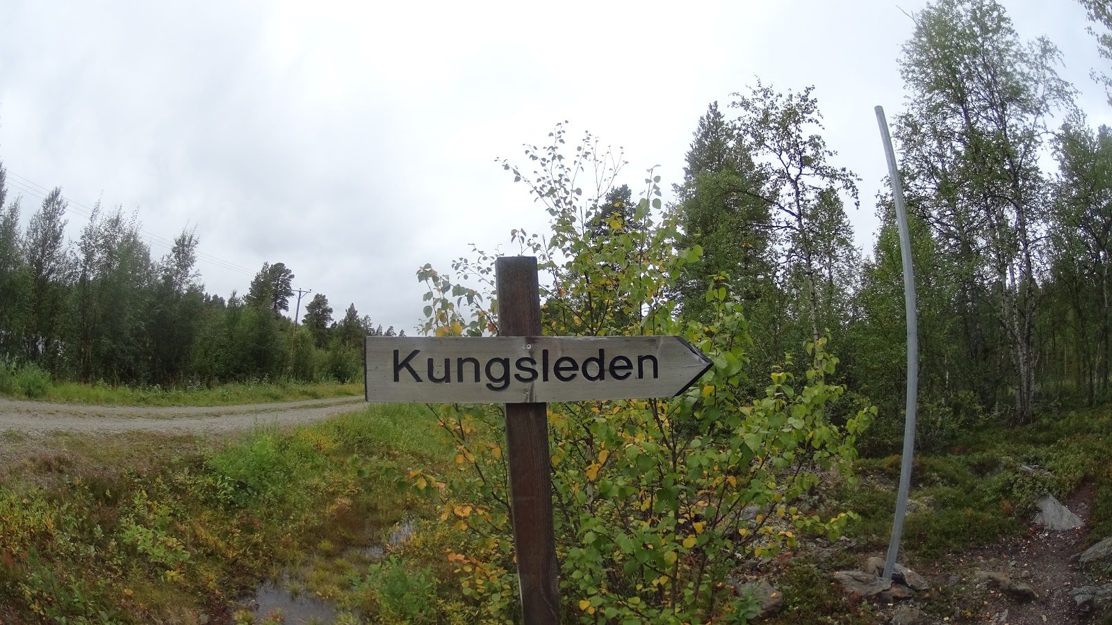 Efter kanske 6-7 km kom jag ikapp Göran & Anders (som jag förstått att de äldre herrarna heter) vid skiljet där den gamla leden gick ner till båttransport men numera istället viker av mot roddled. Jag vet inte varför de stannat, kanske de rättade till packningen eller tog av sig regnjackor, men jag gick förbi dem och vidare. Vid en myr med blåbärsfylld björnspillning på stigen hörde jag dem föreslå kafferast. Jag tog själv en liten paus med nötter vid en sjö längre fram.