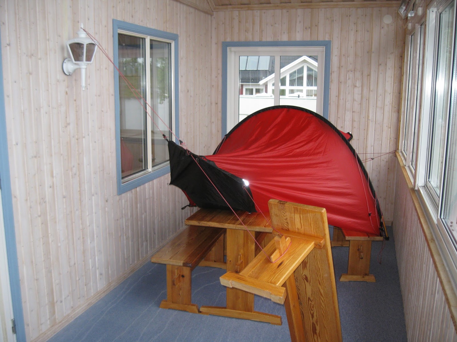 | Lyxen i att kunna torka sitt tält med infravärme. |