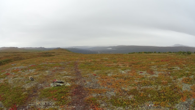 Damen från Mora som jag träffade i Singi sa något ganska klokt, att det fanns något frigörande, lugnande över att man inte kan göra något åt vädret, att man liksom är utlämnad till det och dess skiftningar. För det är ju så, du har inget alternativ, du måste anpassa dig. Det har också blivit så efter tre veckor att det inte nödvändigtvis är att betrakta som dåligt väder, men i alla fall "annat" väder. Och det blir inte som hemma, att regnväder per automatik betyder en massa krångel, att det man tänkt göra behöver ställas in, göras annorlunda eller senare. Här är annat väder bara andra förutsättningar, andra krav och en variant på igår. Visst, jag har haft tur hittills med regnväder och inte behövt ta ner eller sätta upp tält i sådana förhållanden i någon större utsträckning och jag är väl medveten om att vardagsplaner inte existerar, här går jag bara, den ena dagen efter den andra, men ändå, jag vidhåller att det är annorlunda på långvandring.