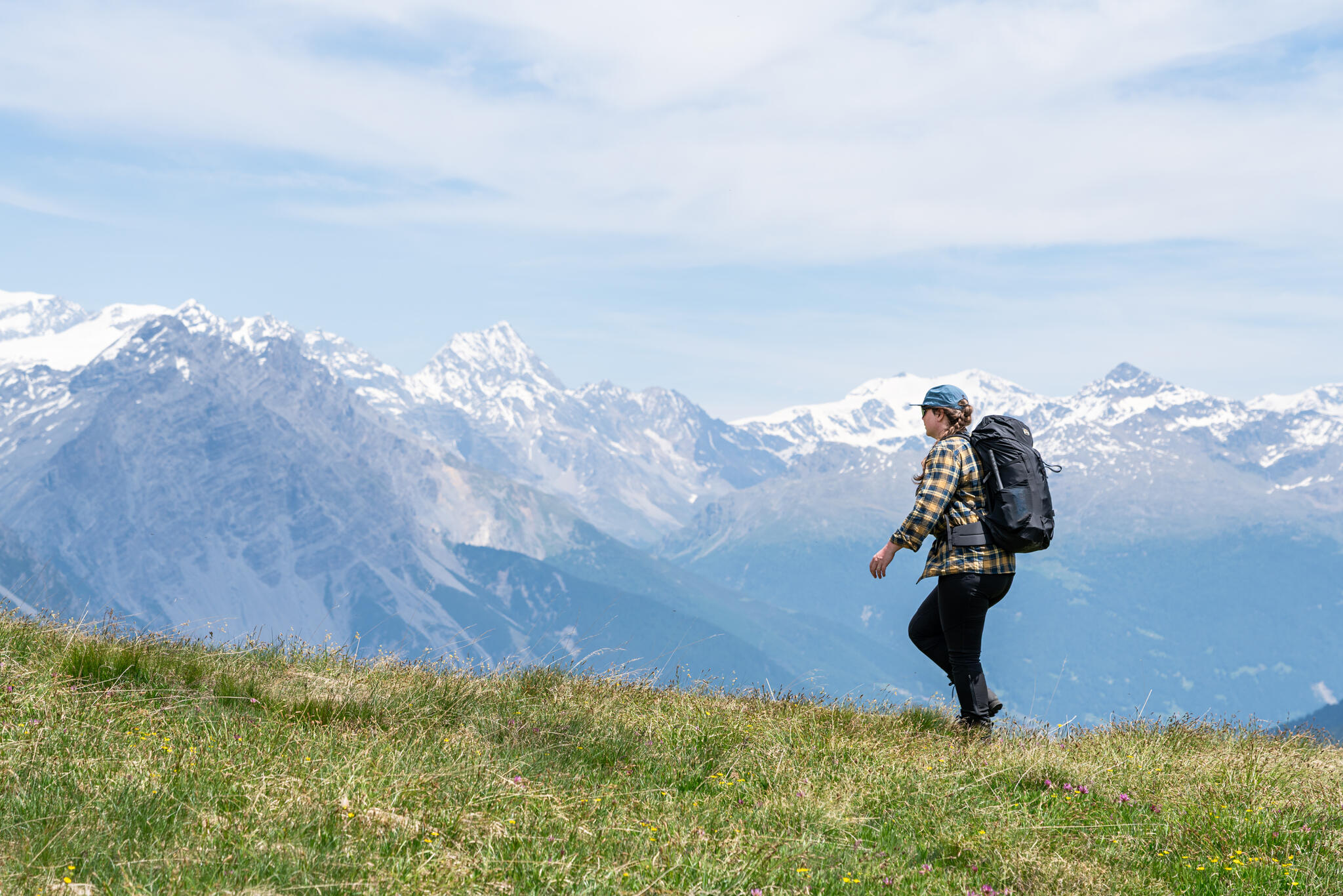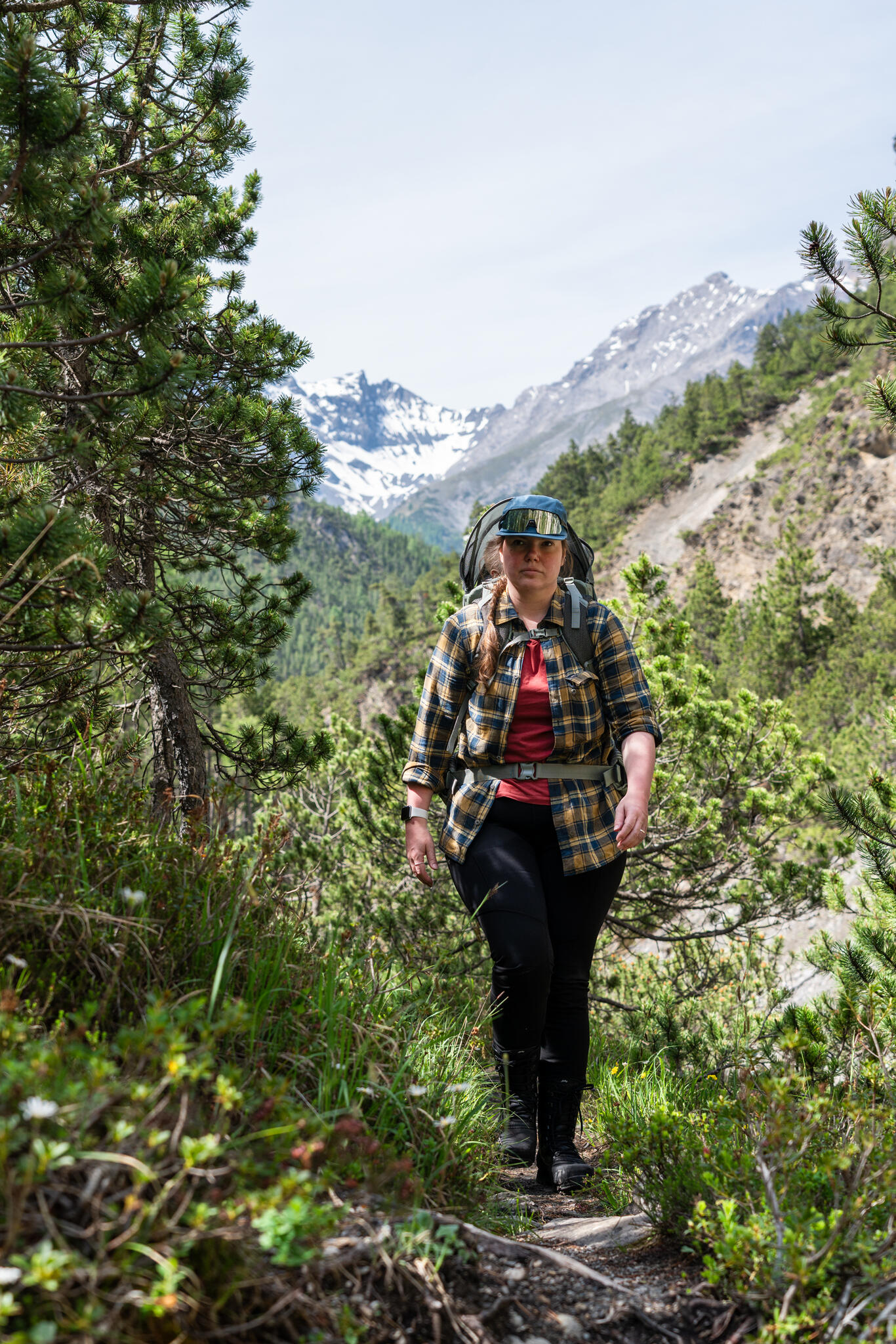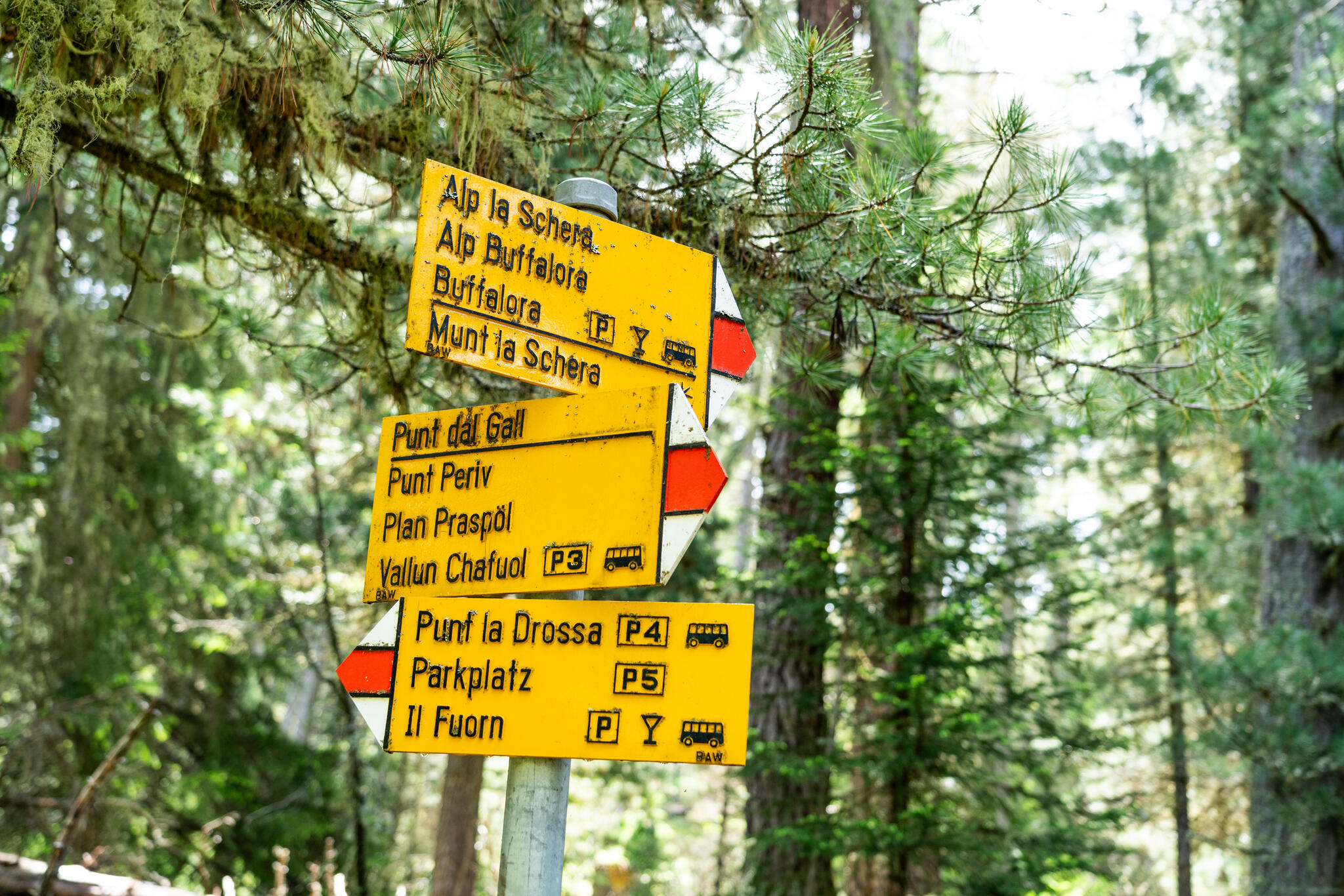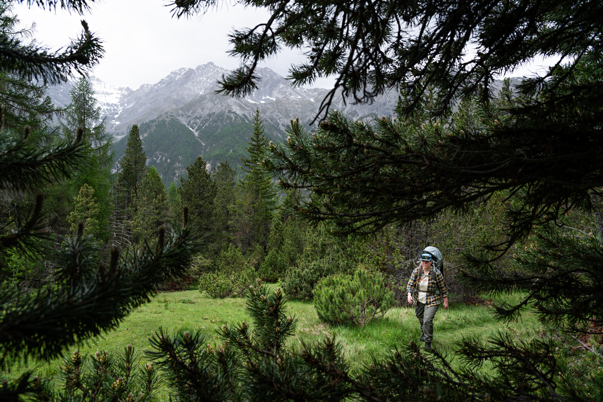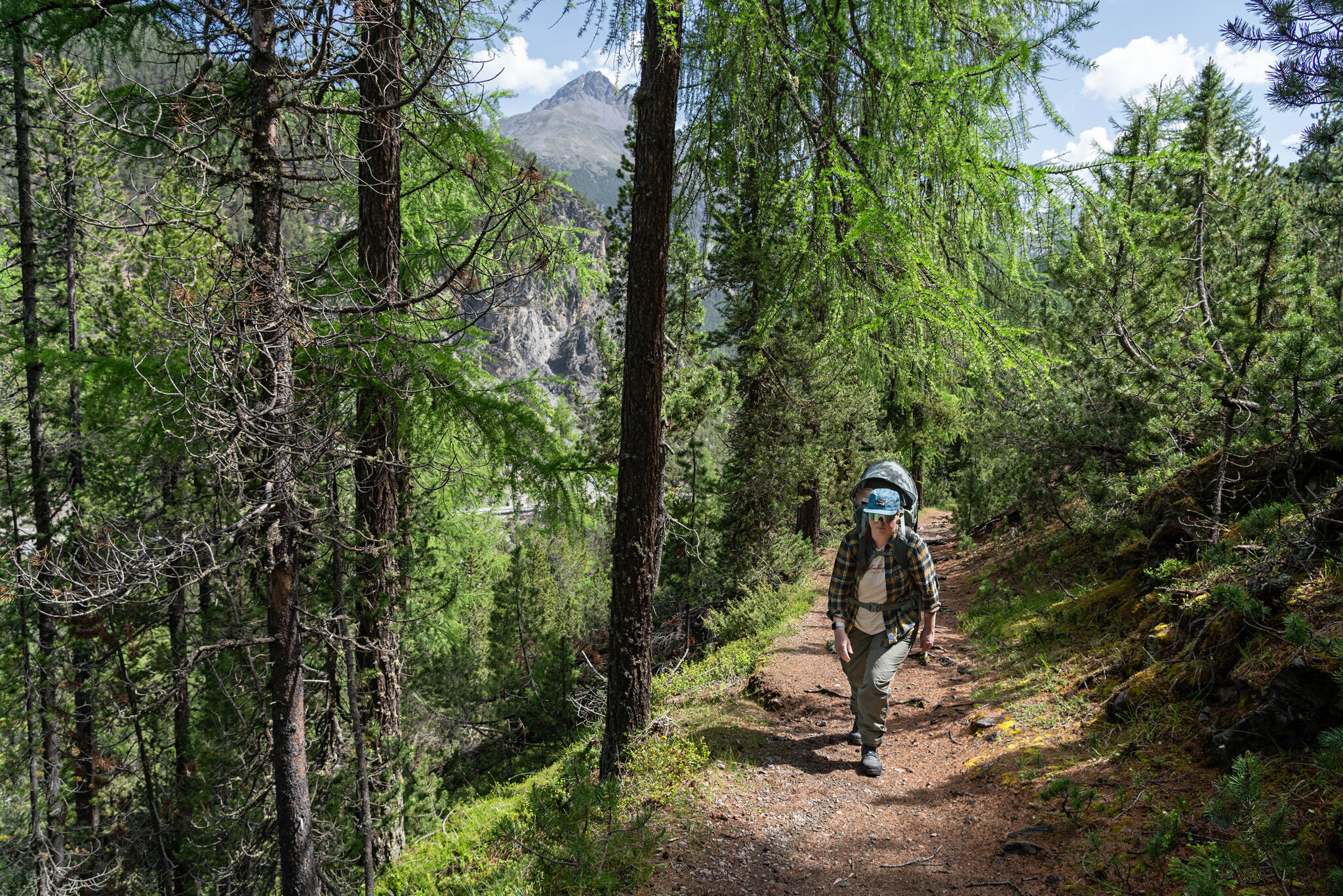 Nationalparken bjuder på totalt 21 vandringsleder av varierande svårighetsgrad, längd, höjd och tidsåtgång. Vår första led för dagen, nummer 11, Alp la Schera ligger passande nog precis vid infarten till tunneln på den schweiziska sidan, vid P4. Totalt tre kilometer lång med en stigning på 400 meter, passar den oss småbarnsföräldrar perfekt. Även om den första delen erbjuder lite mer lutning är det en behaglig tur. På ena sidan ser vi hur dalen slingrar sig bort med bergstopparna i bakgrunden. Det är magiskt. När leden nästan gör en 180 graders sväng och viker upp mot Alp La Scheratoppen på 2095 meter över havet, kan du välja att svänga av till nummer 10, Spöl Valley om du önskar.