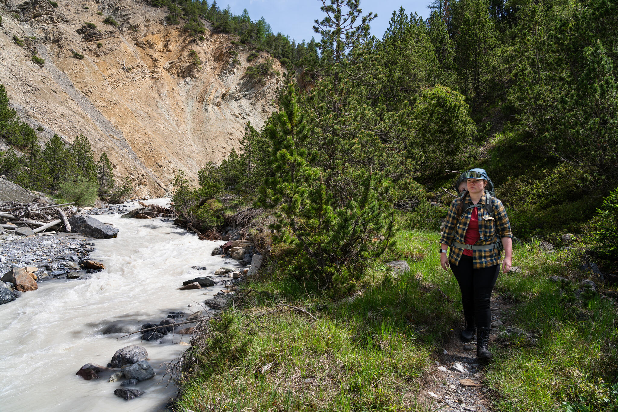 Vägen ned är en lika stor upplevelse som vägen upp. Vi unnar oss en överraskande god lunch på Il Fuorn vid P6, innan vi beger oss ned till P3 där Spöl Valley har sin kortaste väg ned till ån med samma namn. Här blir det tidvis ganska brant ned, och vi inser att vi inte kommer komma hela vägen till vattenbrynet som vi hoppats på.