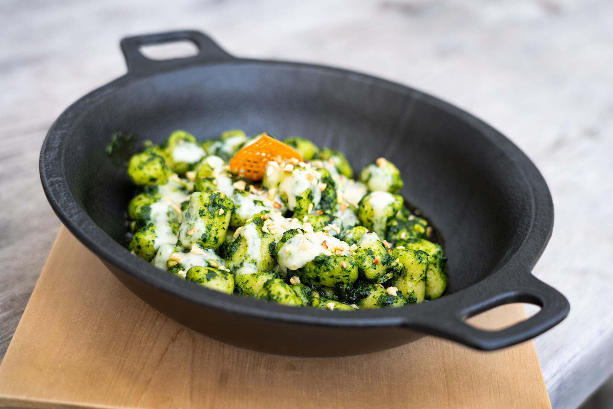 Efter att Anton doppat fötterna i den kalla fjällbäcken så beger vi oss tillbaka istället för att följa leden ytterligare. Det börjar bli dags för en välbehövlig lunch på ll Fuorn, igen. I solen på uteserveringen trängs vi med en busslast pensionärer samtidigt som sportbilarna och motorcyklarna susar förbi upp och ner i dalen. Maten är om ännu bättre idag än igår. En blåbärsrisotto och Gnocchetti med svartkålspesto med rostade hasselnötter senare är vi överens om att detta var väl värt prislappen. Vill man slå på stort och befinna sig mitt i nationalparken finns här även ett hotell med rötter från år 1489.