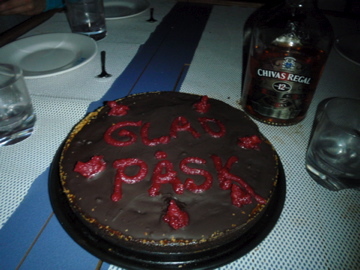 Under Påsken stormade det på rejält så vi fick skjuta upp middagen till vår halvvägsfest nån dag senare. Dock blev det Godisäggletning i svajjningarna...