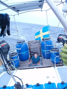 Halvvägs över havet så råkade vi aktivera SPOT'ens nödknapp ( en sorts GPS som kan markera din resa samt skicka ut ett larm om något går fel) o ett larm utgick till SOS o till Ola. Vi trycker ju vanligen en waypoint på denna vid skiftbyte var 4e timme o vi uppfattade inte misstaget om fletryckninge förrän SMS om att ringa Ola pepprade vår satellittelefon o Skinnet snabbt ringde upp yrvaket o undrade hur vi mådde. Intressant att se hur den fungerar iaf! :)
