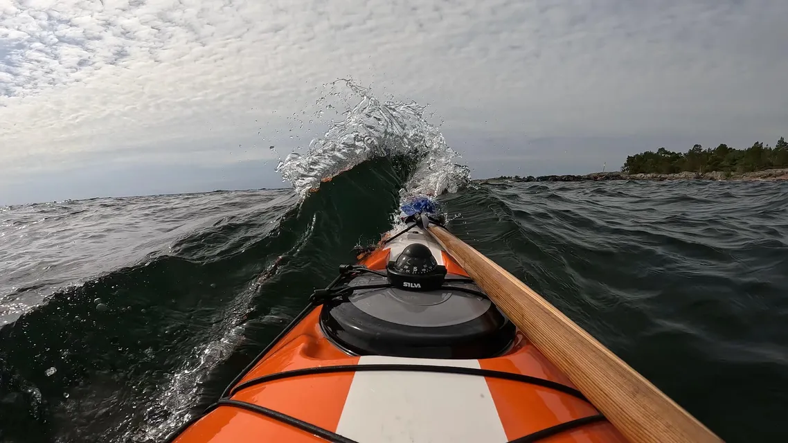 Fullastad kajak igen går lite trögare i vattnet men det ska lätta efter hand.