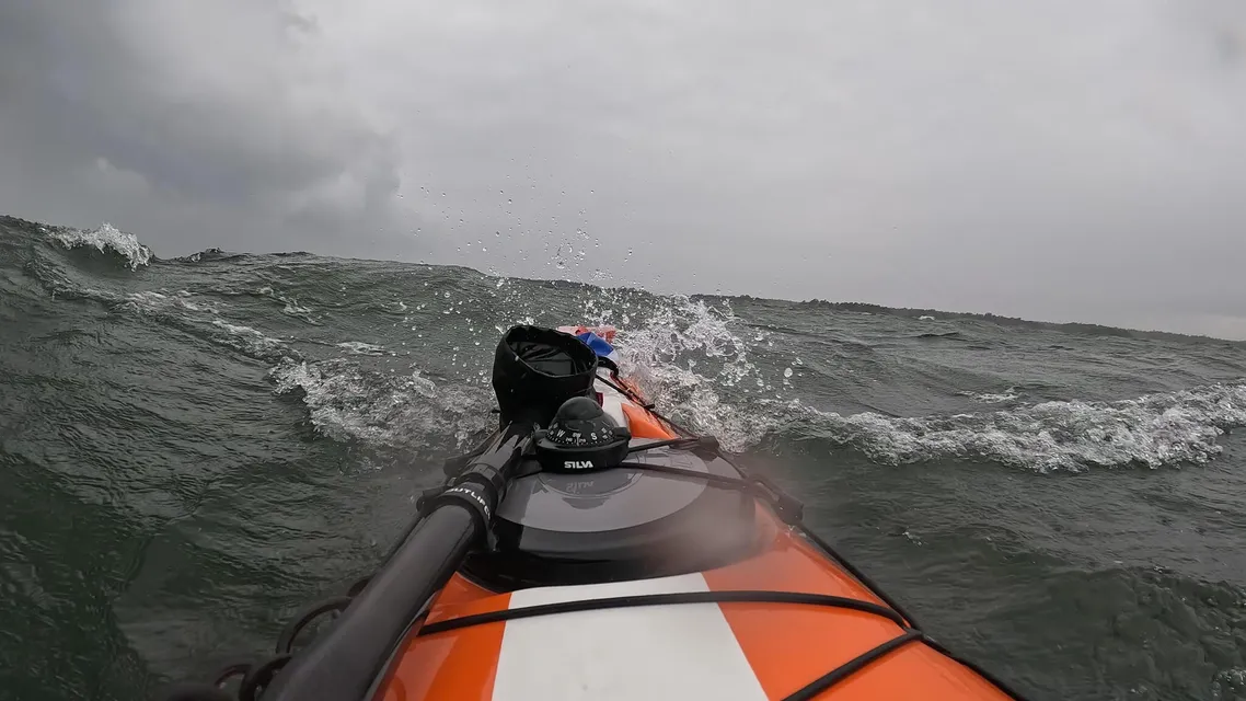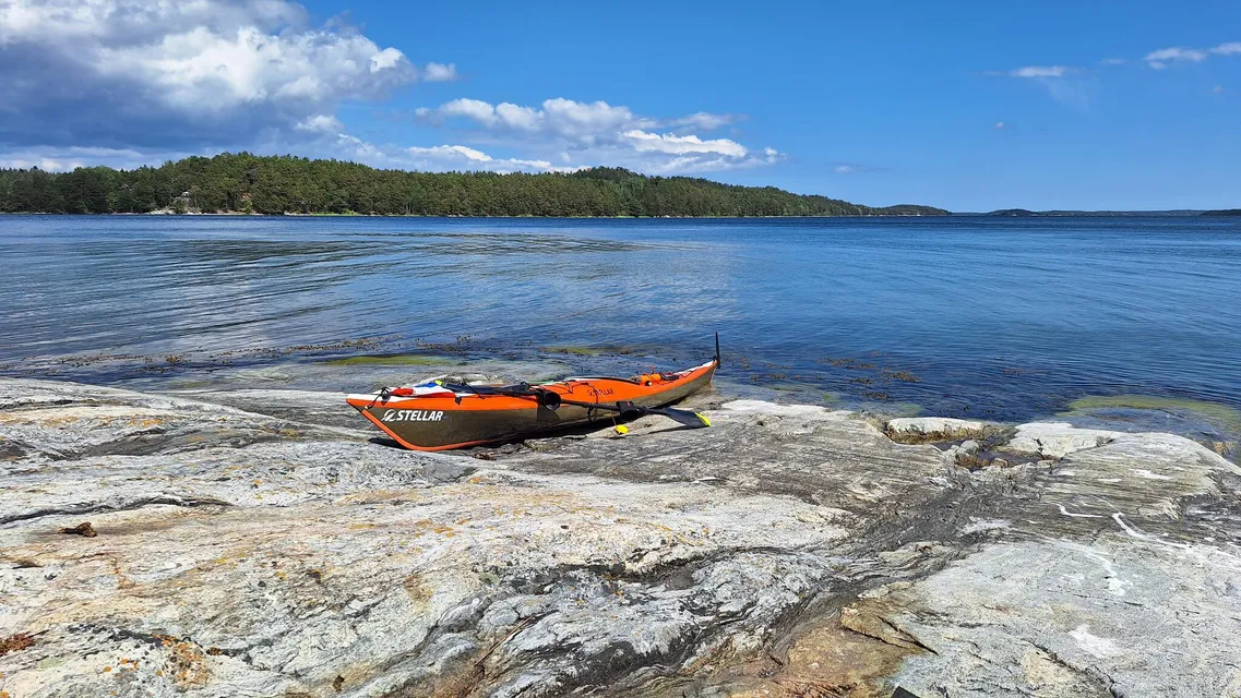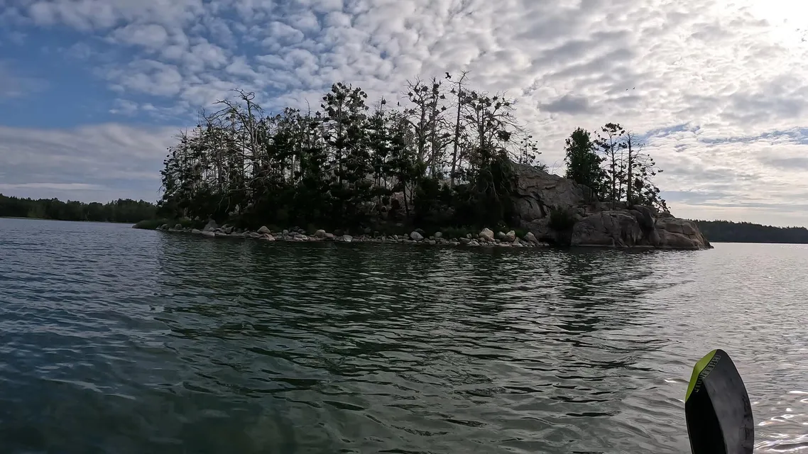 Vädret sa 10-12 m/s idag så jag hade tänkte en mycket kort distans till kanske Lökholmen. Och i början blåste det en hel del. Både med skeda och fullt roderutslag så hade jag fullt upp med att hålla upp kajaken snett mot vinden. Därav kramp i vänster vad.