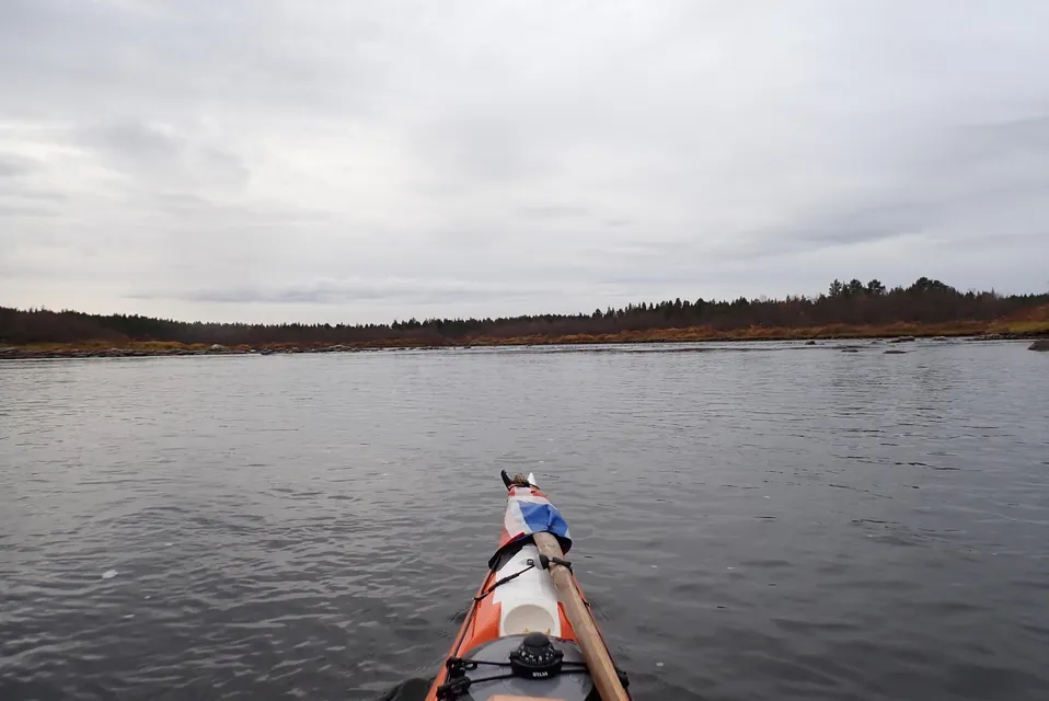 De var start för den första av gränsälvarna Könkämäälven och det började med sjöpaddling i blåst.
