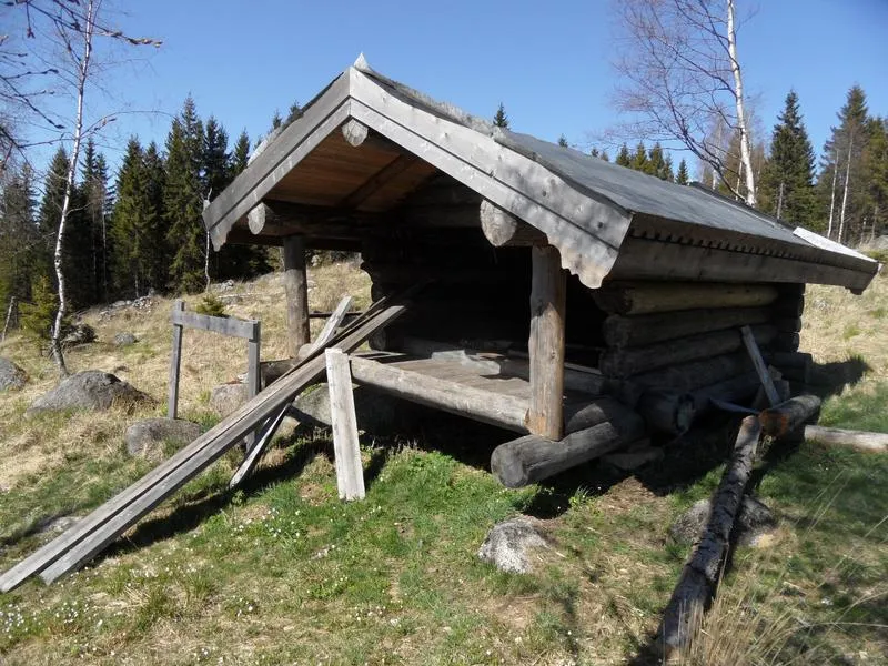Kristihimmelsfärdshelgen ägnade jag och Livskamraten till att dokumentera vindskydd, kolarkojor och fiskestugor i trakten av Hällefors och längs Svartälven. Ytterligare 43 tänkbara övernattningsställen är "upptäckta". Av dessa var 40 planerade. 3 hittade vi av en slump. Ett av dessa låg utanför Risfors, bara ett par km innan vi kom fram till vårt övernattningsvindskydd. Antagligen är det någon sorts jaktkoja.