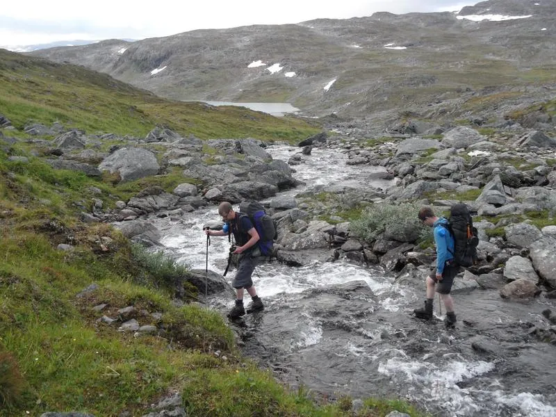 Det började inte som jag tänkt... Jag kände mig lite smått missnöjd i de första ganska lätta backarna söderut från Katterjåkks station. Tanken var ju att vi skulle ta oss över bron över Gatterjohka och sedan in i Vassivagge, men på vägen upp mot bron tänkte jag mer och mer på vad vi i så fall skulle missa: De fantastiska tältplatserna vid sydöstra stranden av Gatterjavri! Skulle jag inte låta Sönerna njuta av dem? Jag har ju tältat där VARJE Abiskovandring... Dimmorna och ljuset brukar vara magsiskt där.