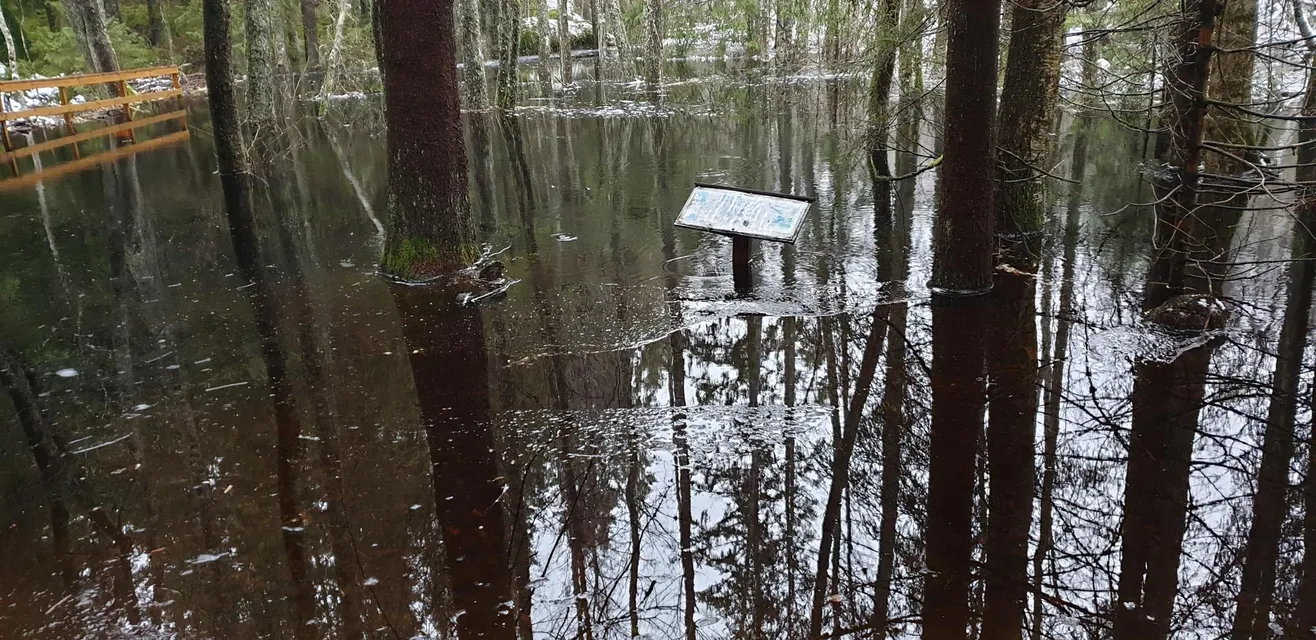 När du passerat Sixtorps gård tar du första vägen till höger. Innan du passerar bäcken ska du följa stigen till höger.