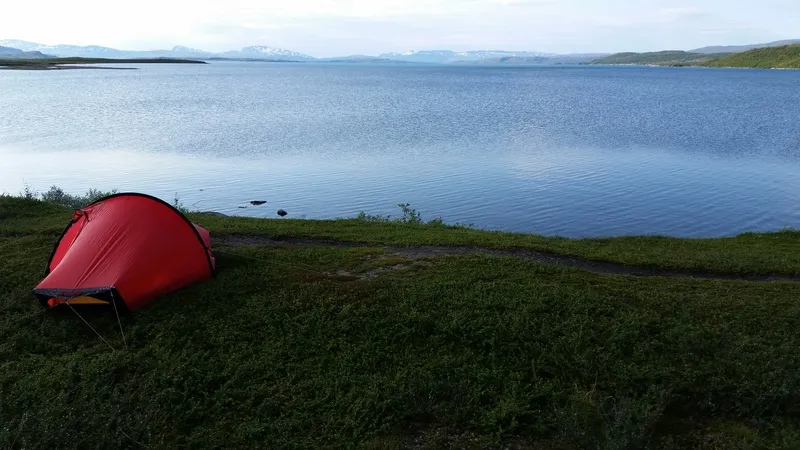 Jag ligger på rygg på mitt uppblåsbara liggunderlag utanför tältet. Platsen är Staloluoktas tältplats och jag ligger och väntar på helikoptertransport till Ritsem för vidare transport till Kebnats och sedan Saltoluokta, där Livskamraten väntar.