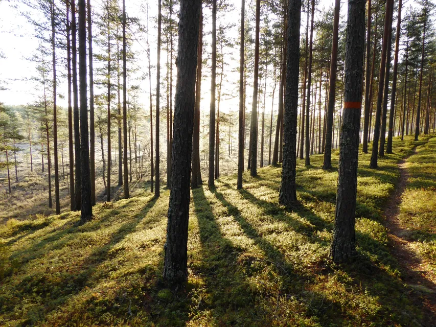 Vägvalet i fortsättningen ger sig självt – och är kanske en aning ointressant. Från Nittbo leder en stig söderut. Efter ett par hundra meter delar den sig. Den västra leder snart fram till en skogsväg som löper exakt efter stranden till Salbosjön. Jag kan följa den ner till torpet med det egendomliga namnet Korpens hål, för att där svänga upp i skogen österut och ganska snart stöta på den stig som jag kan välja istället för att vandra vägen längs sjön. Stigen svänger österut och nuddar den sydvästligaste viken av Ljusnaren innan den övergår till att bli mer väg, fram till torpet Kandla.