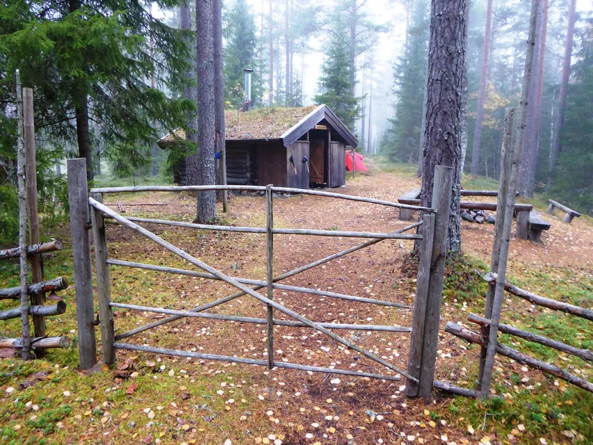 Inte heller skedde vandringen från källorna och söderut, utan åt motsatta hållet. Det hade främst logistiska orsaker. Eftersom jag ville komma ut redan på en onsdag kväll måste jag ha nära till ett vindskydd. Bra vindskydd saknas i norra delen. I söder däremot - i Stjärnfors - där finns två. Trodde jag.