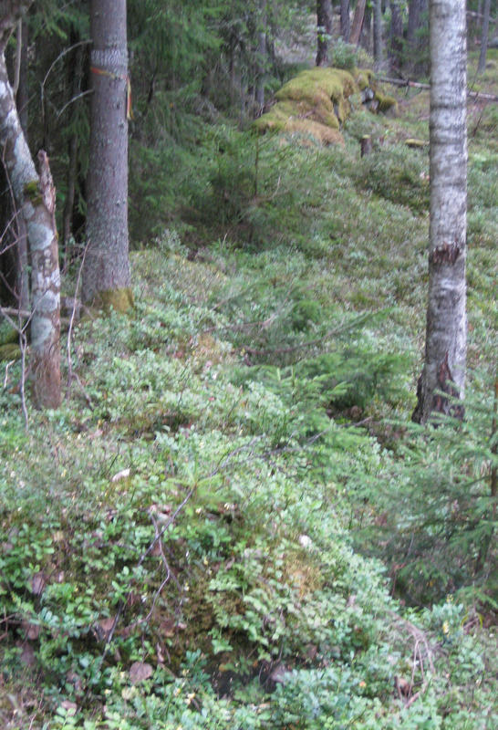 Men!? Visst kan man ana en förhöjning i marken under allt ris och all mossa? Och... där dyker den upp igen!