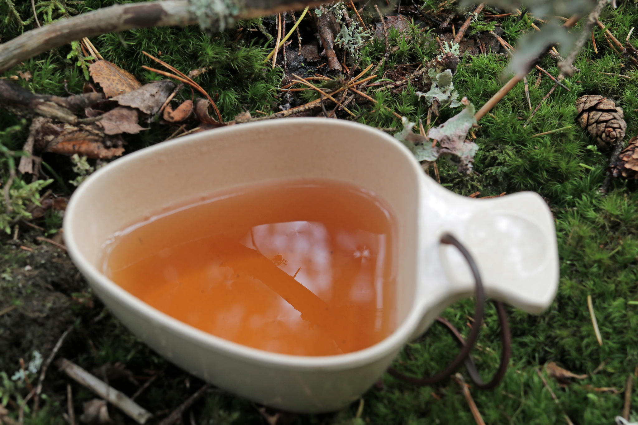 På rätt spår igen fortsatte leden ned mot Sävsjön, den tredje sjön. Tiden hade sprungit ifrån mig och magen kurrade. Kilometrarna hade inte blivit många, men så hade jag roat mig med både kamera och undersökningar av omgivningarna längs vägen. Någon miljagare är jag inte! På en sten med utsikt över ett halvt uppvuxet hygge, höljt i höstens alla färger, och med dagens första och enda regnskur smattrande mot regnkläderna, blev det lunchstopp. Egentorkad gryta med snabbris, skinka, curry och lite andra kryddor blandades med termosvatten. Tänk så gott det smakade. Några nyfikna talgoxar studsade tvittrande omkring i granarna över mitt huvud och tyckte det såg väldigt spännande ut det här.