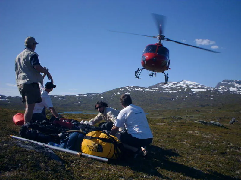 Rotorbladen skar ljudligt i den djupblå himlen, den blodröda helikopterkroppen gungade intensivare i takt med att hastigheten på den trebladade lyftanordningen ökade. Med vinden rivandes i videbuskarna och med ett öronbedövande dån lättade flygfarkosten och försvann i horisonten. Under ett par sekunder var tystnaden total, sedan kom myggorna. Det var dags för TV inspelning i Lappland.