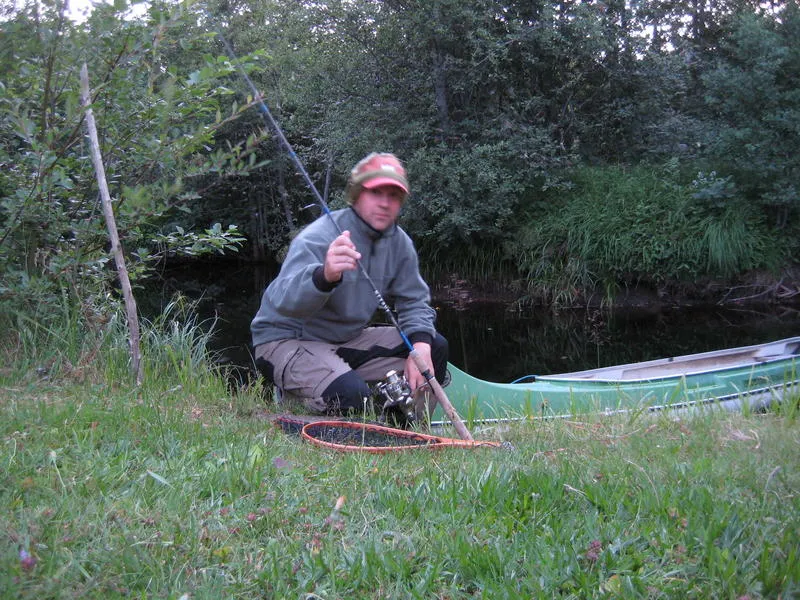 Kvällens vindar försvann så sakteliga. Den näst intill outhärdliga värmen sjönk ett par snäpp på termometern. Kanoten krängde något när jag entrade från långsidan. Med ett kraftigt frånskjut var den i rörelse. Ljudlöst satte jag i paddeln i åns kalla vatten och drog till. Farkosten ökade farten och de skogsbeklädda sidorna av ån försvann i snabb takt. Det enda ljuden som kunde höras var de lilla sorlet från kanoten, där den skar genom ytfilmen i det spegelblanka vattnet, och ett lite rasslande när fiskespöt rullade åt sidan och la sig på botten av kanoten. Skymningen var nära...