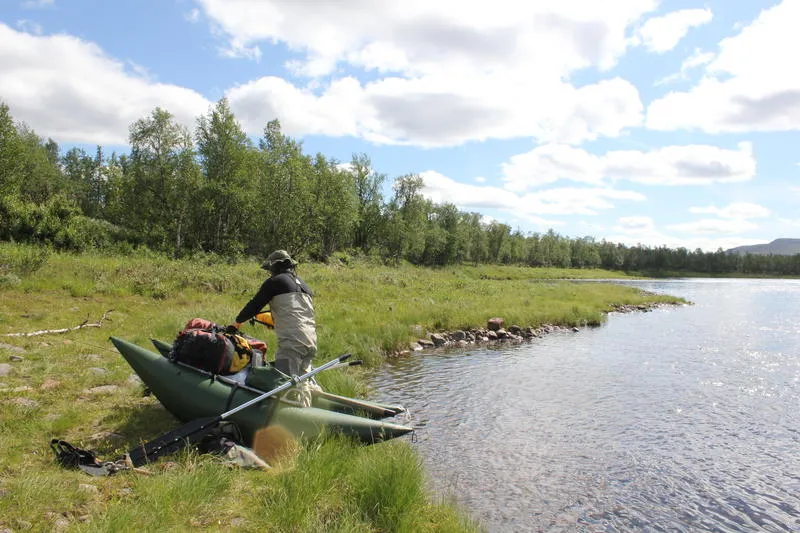 Gång efter annan petar jag upp ett stycke av min sommarhändelse i skrift här på bloggen. Del fogas till del och en ganska så angenäm bild av ett fiske och fjälläventyr tränger fram. En bild av en roddresa på pontonbåt som fyllt mig med glädje och energi och som fått min arma kropp att stärkas. Många är ni som kommenterat och hejat på, önskat läsa nästa del osv. En del förfrågningar om pontonpaddling och hur man skall hanskas med rutten har också dykt upp. Då och då har jag brutit skriften för att förmedla bild och även ibland film från resan.