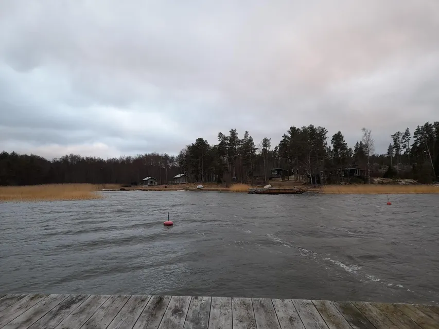 Jag är en kalendermänniska, så december betyder att det är vinter nu. Det är en grå och varm första adventmorgon, 7 grader och lugnt. Fuktigt i luften. Några skrakar flydde iväg när jag kom ned till bryggan. En knipflock ute i fjärden lyser ikapp med stugägarens stämningsbelysning i Tellskärsvassen bakom. En havsörn flyger långsamt över från Tellskär till Dånö. Jag kommer att tänka på de apatiska gamarna i Djungelboken, som i brist på annan sysselsättning tänkte flaxa över till andra sidan. Det är en händelsefattig dag. Kråkfåglar över Bonäs fiskebodar. Skönt att bara sitta här. Minns att jag som barn läste i fågelboken att det inte var jag som gick ut och tittade på fåglar med kikaren, som var konstig, utan de som inte gjorde det. Det gäller väl i ännu högre grad i dag, med allt internetberoende som finns. Fågelskådning är en sund hobby. Att bara sitta här och lyssna på vinden är fin meditation. En ensam havstrut flyger iväg bortöver Finnöudden. Någon på Dånösidan har lillajulpyntat sin strandbastu, så att den lyser som en amerikansk korvkiosk. Den glittrar fint i det gråa. Jag hör stjärtmesar inifrån alarna i vassviken. Jag får syn på de vita duntottarna i kikaren. En siskflock lösgör sig från skogskanten och flyger en sväng. Den här tiden på året är de högst antagligen gråsiskor. Vattennivån är flera meter högre än i somras. Vädret har varit ostadigt den här veckan. Ännu en havsörn kommer inglidande från Bonäsviken. Den försvinner bort över Måsön mot Dånösidan.