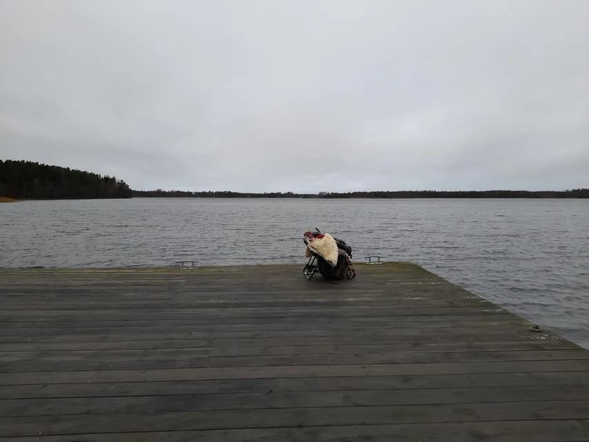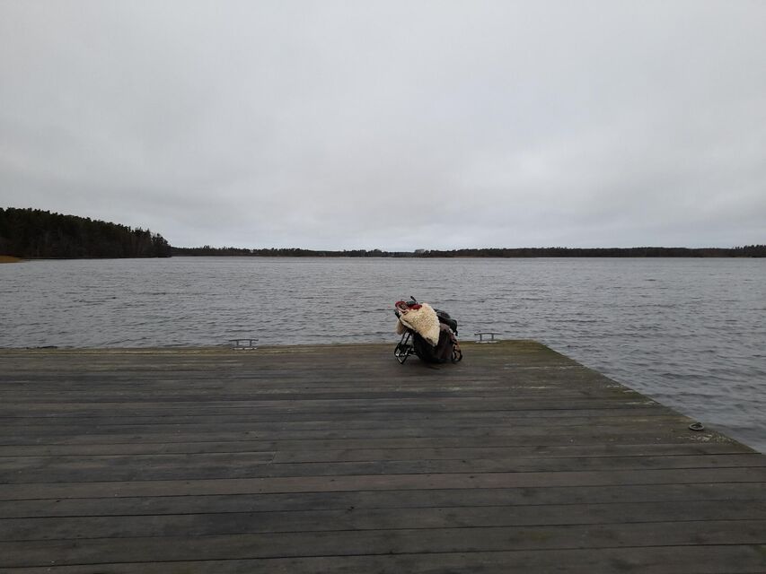 Det finns ett fotavtryck i bryggans betongfundament. Det har kommit dit av misstag. Jag kommer att tänka på Peps Persson, som på LP:n Spår från 1978 sjöng att man bör frukta den vite mannens spår i sanden. Det är sant vad gäller avtryck i naturen. Bara denna höst har ett skogsbolag kört sönder två älvar med dammusslor i norra Finland. Jag kommer ner hit på blixthala vägar. Det är en mörkmulen morgon med spegelblankt vatten och två plus i luften. Änderna har minskat i antal här. Påfruset inne i vikarna. Någon vigg, knipa och skrake här och där. Jag har problem med att kikaren immar igen. Får koncentrera mig på att lyssna. Talgoxar från strandsnåren, plasket av änder, någon skata. Det droppar under bryggan. Inöver Långösund och Bonäsviken ligger en låg, vit dimma. Det hörs ett "svosch" när den lilla viggflocken vid Bonässtranden packar ihop sig mera. Ljudet av någon knipvinge och en kråka. En avlägsen björktrastflock försöker tjattrande övertyga mig om att det finns tillräckligt med frusna rönnbär kvar för att stanna över vintern. Ett par gråtrutar gör en inspektionsrunda in över Bonäs. Jag hör rösten av en man som pratar i telefon komma närmare. Han skrämmer iväg ett trettiotal vigg, som kommer sättandes ut ur viken, och lägger sig en hundra meter från bryggan. Efter ett tag, när allt är lugnt igen, flyger de tillbaka.