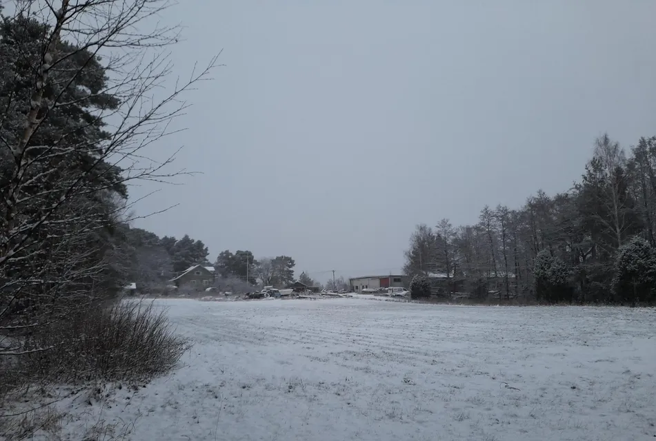 Året kortaste dag är också en av de mörkaste. Det har kommit snö, som lyser upp lite. Annars blygrått gryningsljus lite före klockan tio, och lätt snöfall. Allt är lugnt här nere vid Lökholmen. Isen har börjat lägga sig på den lugna vattenytan. Lika mycket is som öppet vatten på fjärden. Ljud av koltrast, domherre och korsnäbb på väg ner hit. Jag har två veckors jullov. Några skrakar simmade ut från strandstenarna när jag satte mig på bryggan. Ett gäng trutar kommer flygande och bryter tystnaden. Havet brusar bakom Dånö. Grönfinkar flyger över vattnet, någon kråka kraxar. En medelstor rovfågel, som måste vara en duvhök, flyger över från Lökholmssidan till Tellskär. Ibland flaxar den, ibland glidflyger den, på ett för rovfåglar karakteristiskt sätt. Vädret klarnar efter hand och snöfallet upphör. Ännu en duvhök, som jag knappt hinner notera, kommer flygande över i riktning öst-väst. En liten skrakflock söker flygande öppet vatten. Borta vid Tellskärssidan simmar sex sångsvanar, av vilka en är en ungfågel. Hundra meter norrom dem har viggflocken packat ihop sig på en liten vattenyta. En kniphanne dyker när jag får syn på den, men kommer snart upp igen. Inget besök utan örn. Den kommer slutligen sträckande över Tellskärsvassen. Allt är dekorativt som på ett julkort. Om fem timmar är det mörkt.